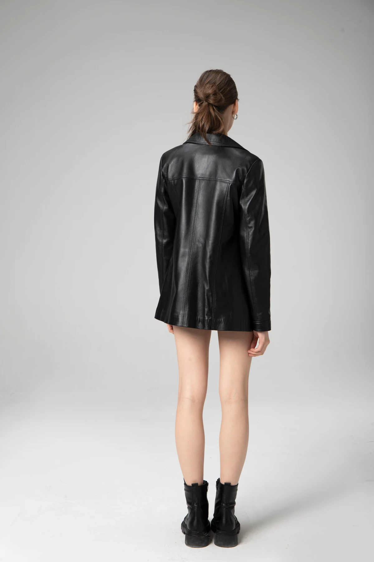 DERİCLUB WM011 Gerçek Deri Kadın Blazer Ceket