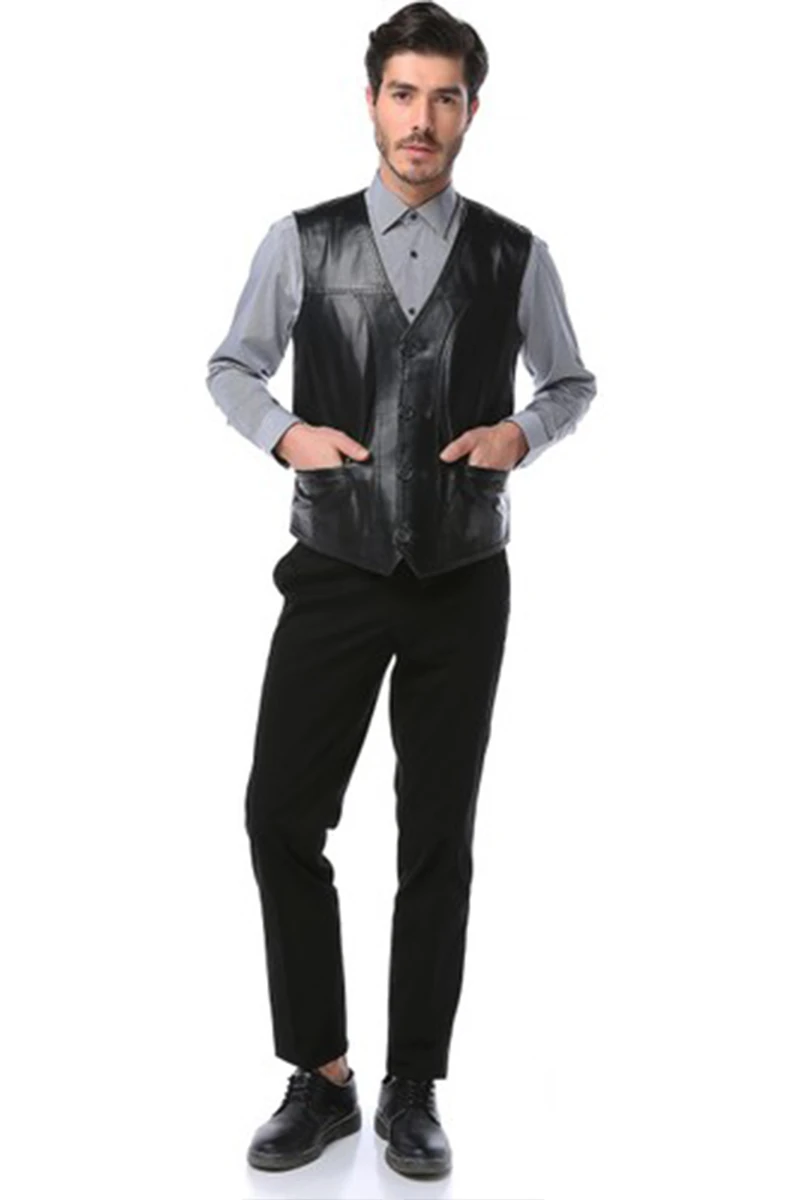 DERİCLUB Aprilla Erkek Motorcu Hakiki Deri Yelek - SİYAH