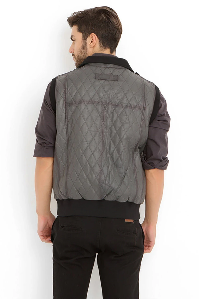 DERİCLUB Alicante Erkek Kapitone Fermuarlı Hakiki Deri Yelek - GREY