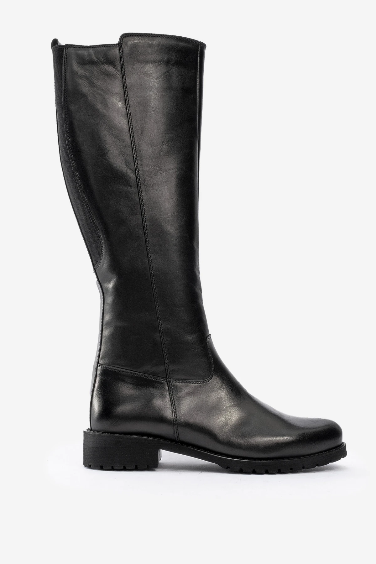 DERİCLUB Kadın Streç Lastikli Küt Burun Topuklu Çizme Gerçek Deri BR 88068 - SİYAH