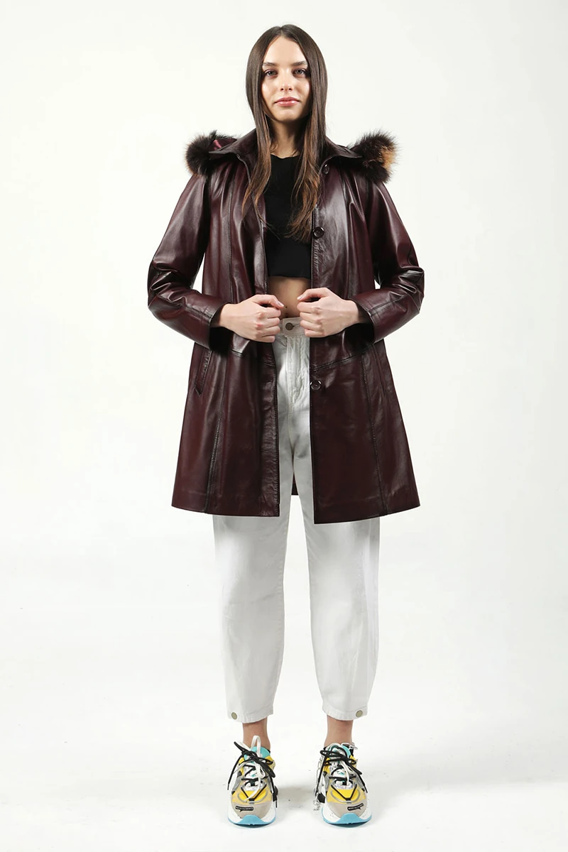 DERİCLUB Donna Gerçek Deri Kadın Kaban - BORDO