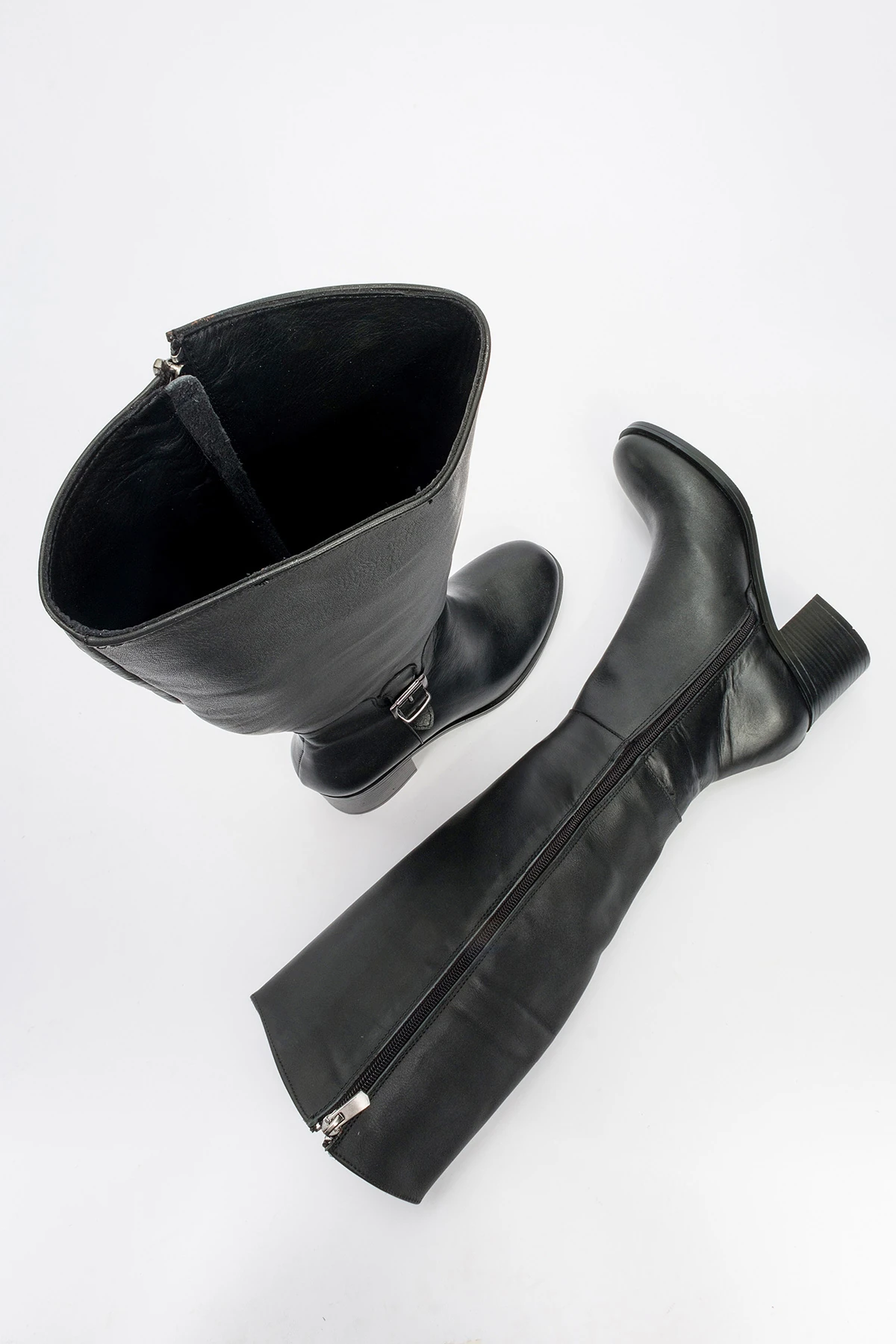 DERİCLUB Kadın Geniş Kesim Kısa Topuklu Çizme Gerçek Deri RG 3019